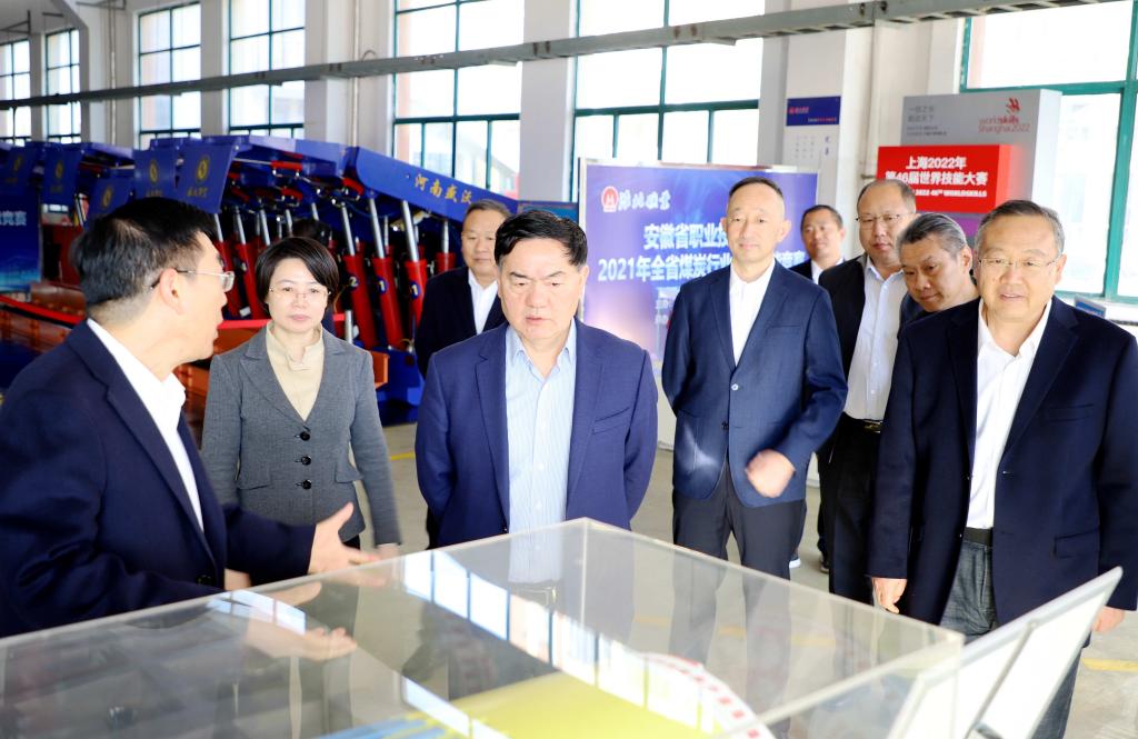 李和平實地參觀了位于學院綜合實訓基地的智能化綜采工作車間、煤礦安全警示教育館、建筑安全體驗館、工匠大師工作室、工匠大師榮譽展廳、實習礦井等場所,并與工匠大師楊杰等深入交流,了解實訓科研、產教融合、校企合作等情況。