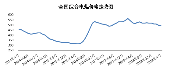 2019年5月15日,國家發(fā)展改革委價格監(jiān)測中心公布4月中國電煤價格指數(shù)為495.26元/噸,環(huán)比下行1.01%,同比下降5.26%。其中,監(jiān)測的31個省市(不含北京市)中,價格下行地區(qū)數(shù)量有22個,下行幅度減弱至27.44元/噸以內(nèi);其他9個地區(qū)電煤價格全部上行,漲幅上行至19.21元/噸以內(nèi)。本月全國煤炭價格活動范圍整體上移,且煤炭價格上下行地區(qū)數(shù)量比例基本維持,說明價格下行區(qū)域活力減弱,而上行幅度擴(kuò)大。