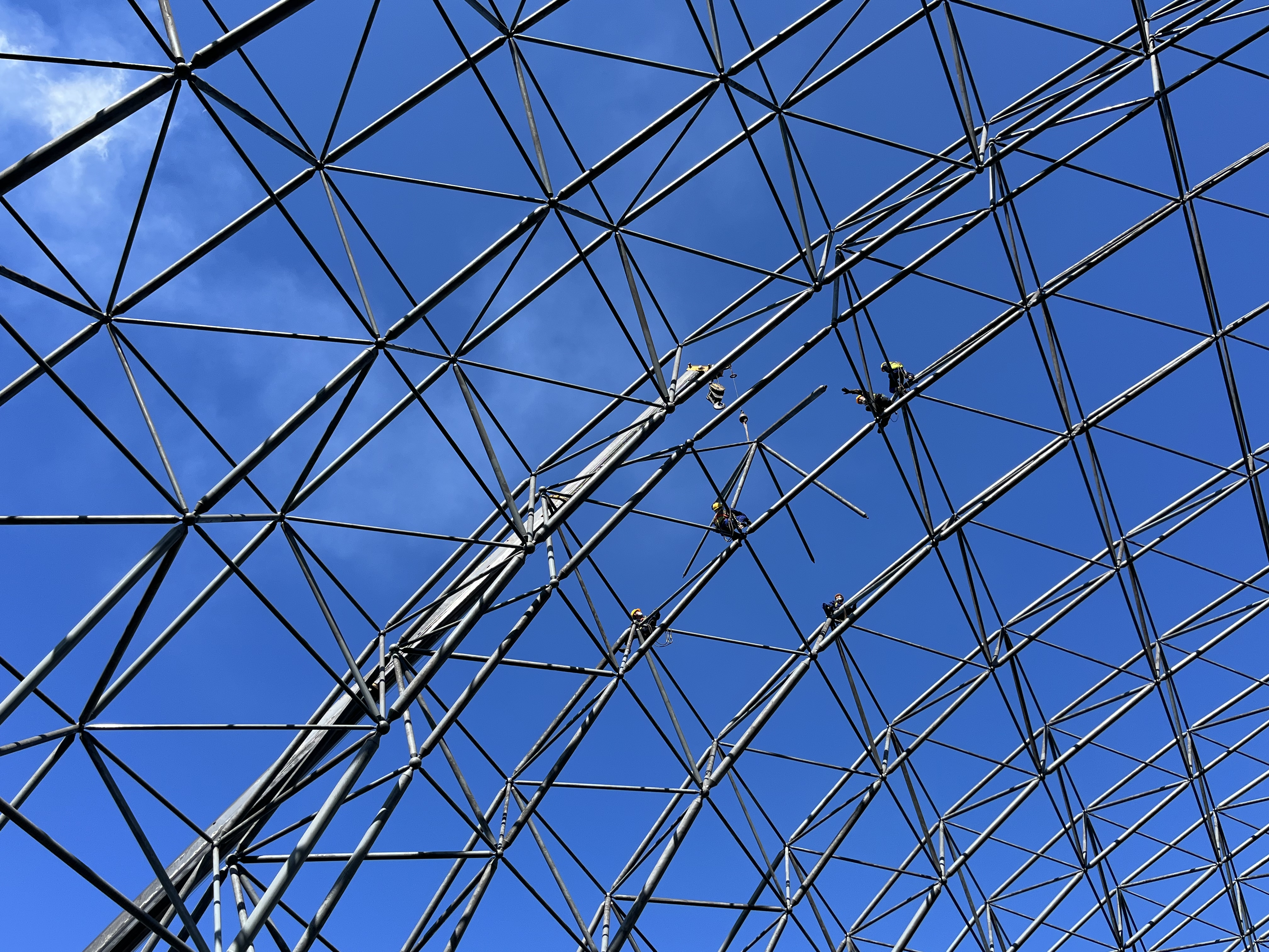 中煤集團伊犁公司安裝卸煤溝煤棚網(wǎng)架,以解決作業(yè)中的揚塵污染問題